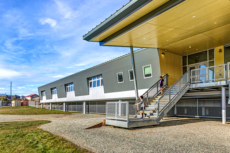 The Lower Kuskokwim School District needed a new school in Bethel, Alaska to replace the historic Kilbuck School that was destroyed in a fire in 2015. The new Ayaprun Elitnaurvik School Structure is a 53,000 SF K-6 school facility with classrooms, kitchen, stage area, and gymnasium. The new Yup’ik immersion program has a large gathering space and stage to showcase performances to the school and community, supporting the school’s mission of providing a high quality Yugtun language education. New basketball courts both inside and out allow students to enjoy this famous regional sport. An indoor archery range and a climbing wall within the gym allows P.E. students to hone these unique and fun skills!